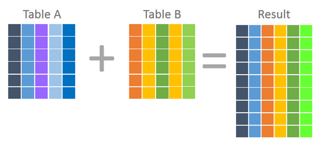 | 새로운 열로 결합 (수평결합) | 새로운 행으로 결합(수직결합) |