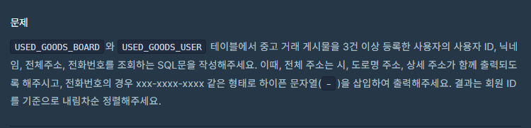 | SELECT 조건에 부합하는 중고거래 댓글 조회하기 (0) | 2023.03.13 |