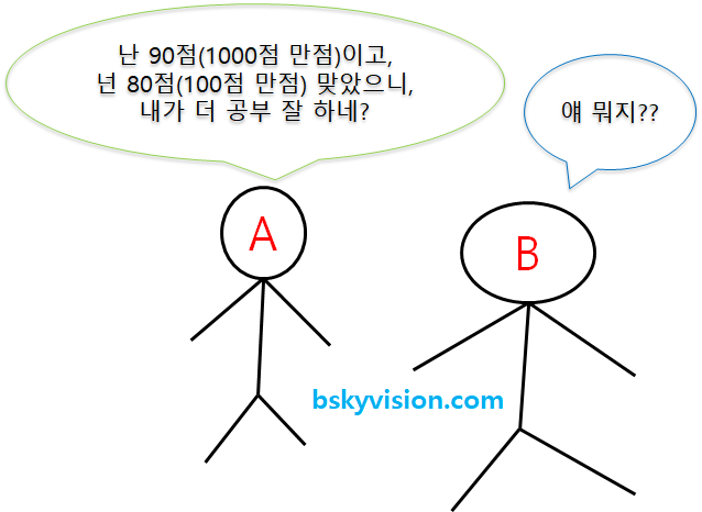 - 점수를 채점하는 공식입니다. (예를 들어 학교에서 중간고사를 봤다면 전체 평균을 계산해 줍니다.)
