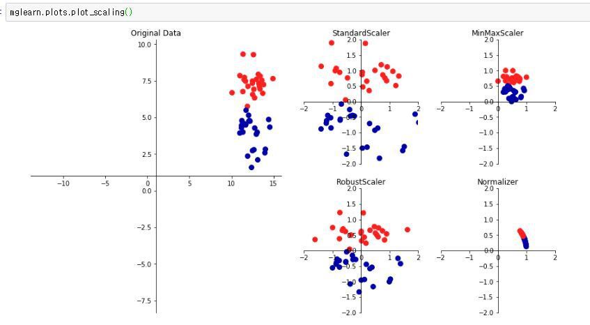 - 특성들의 평균을 0, 분산을 1 로 스케일링하는 것입니다.