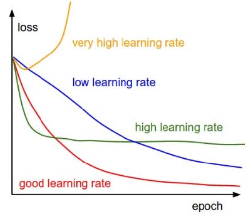 very high learning rate: 매우 높은 학습률은 경우에 따라, 손실을 오히려 증가시키는 상황을 발생