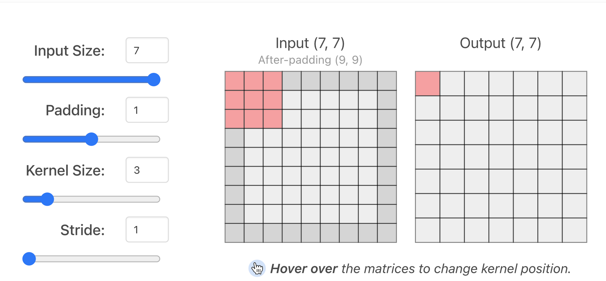 - stride=1이면 필터를 한 번에 한 픽셀씩 이동한다.