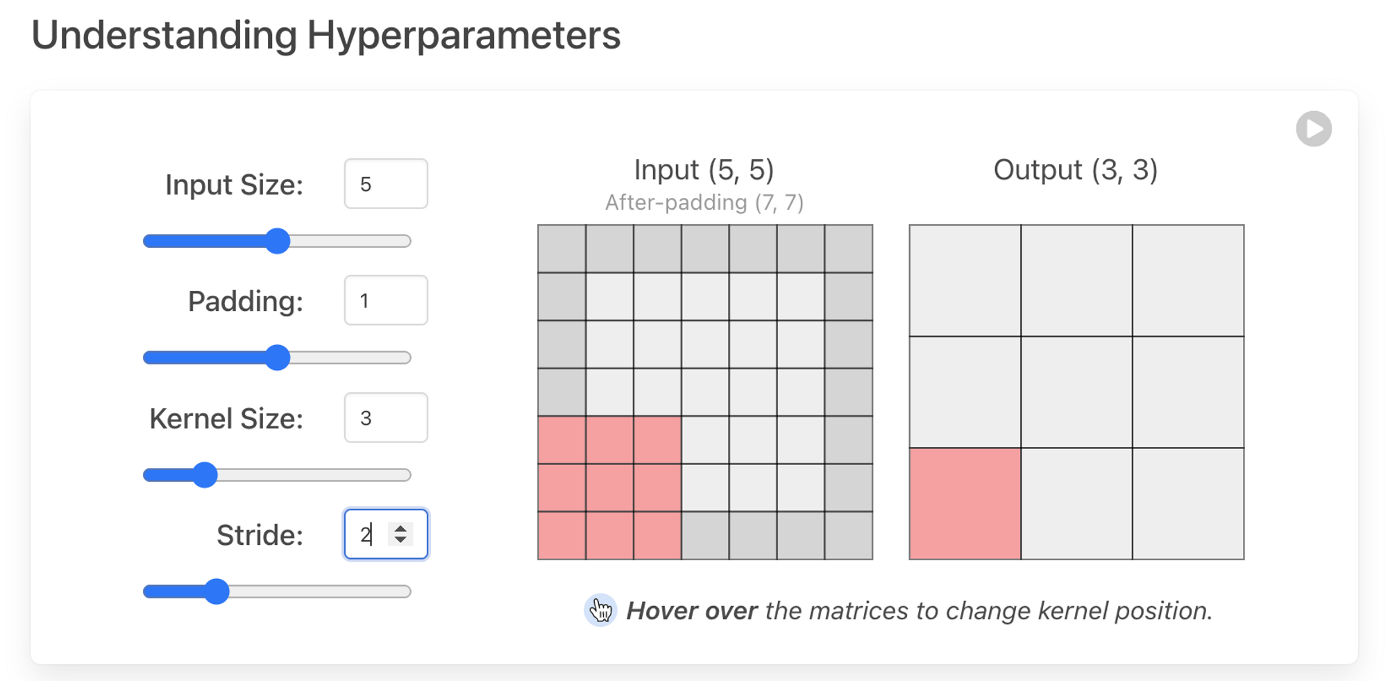 6. Padding, Stride 등을 사용해서 입력과 출력사이즈를 조정한다든지, Stride는 필터의 이동 보폭을 조정하기도 합니다.