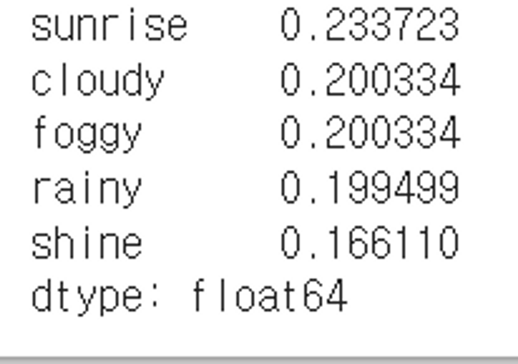 * 예를 들어 train 의 0 은 cloudy 인데 test 는 rain 이 아닌지 확인해볼 필요가 있음.